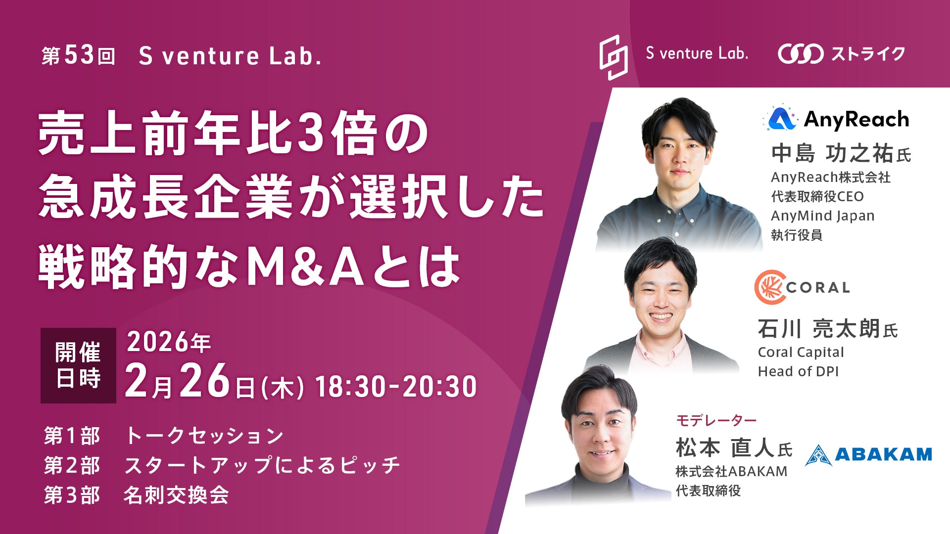 2025年にAnyMind Groupへの参画を果たしたAnyReach中島氏と、シード期から支え続けた投資家として、Coral Capital石川氏が登壇。起業家と投資家それぞれの視点から、急成長期における「戦略的エグジット」の真意と、成功の裏側を深掘りします。